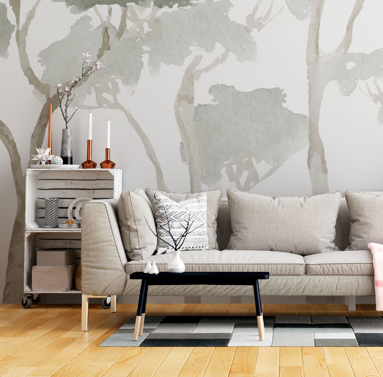 Personalización: Papel mural elaborado a medida, según el ancho y alto de tu muro.
